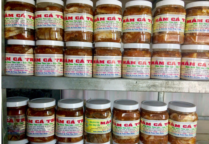 Chính vì vậy các loại đồ khô, mắm như: Cá khoai khô, cá lóc khô, cá ba sa khô, cá kèo, cá sặc rằn, cá trạch, rắn khô, nhái khô,… mắm đóng hộp đậm vị miền tây cũng là những sản phẩm không nên bỏ lỡ trong túi đồ trở về của mỗi du khách.