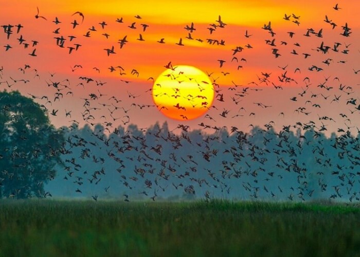 Bình minh và hoàng hôn tuyệt đẹp tại vườn chim